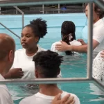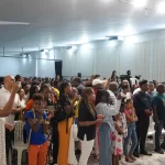 Às 11:00H, no pavilhão multiusos, deu-se início com muito louvor e alegria a mais uma cerimónia de Batismos nas Águas.