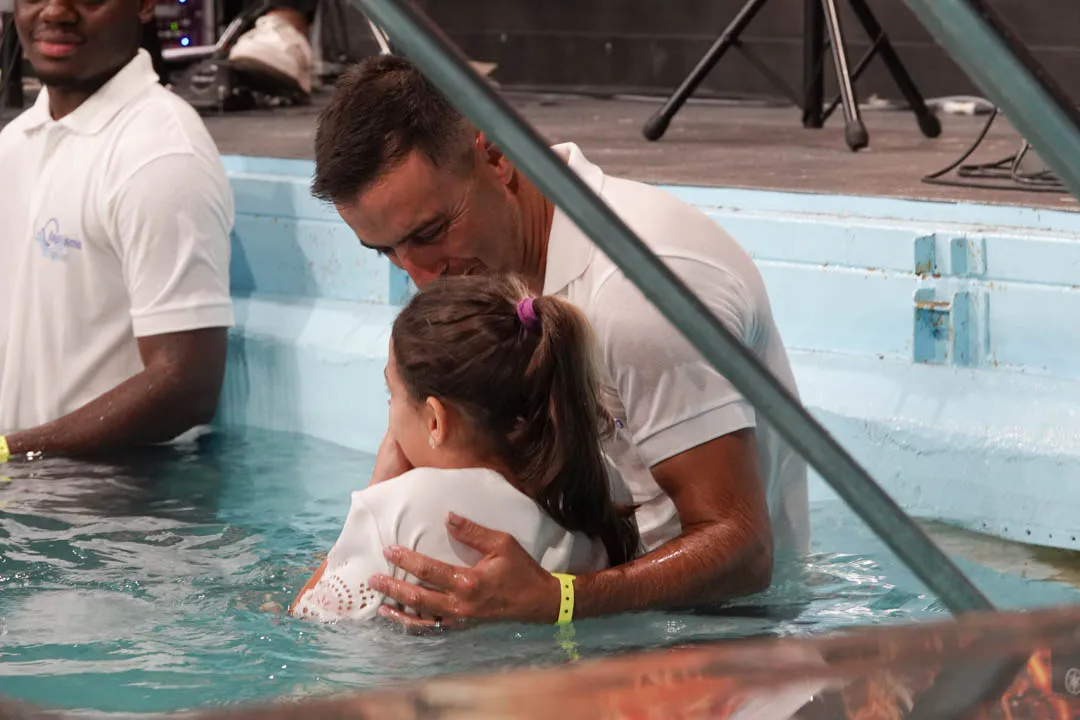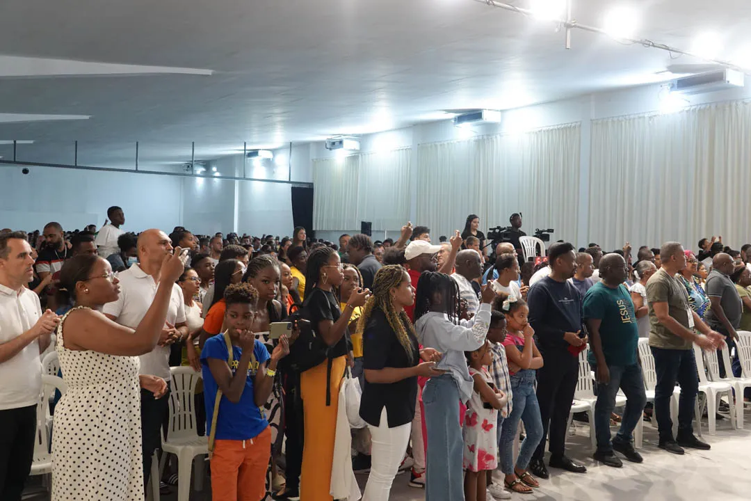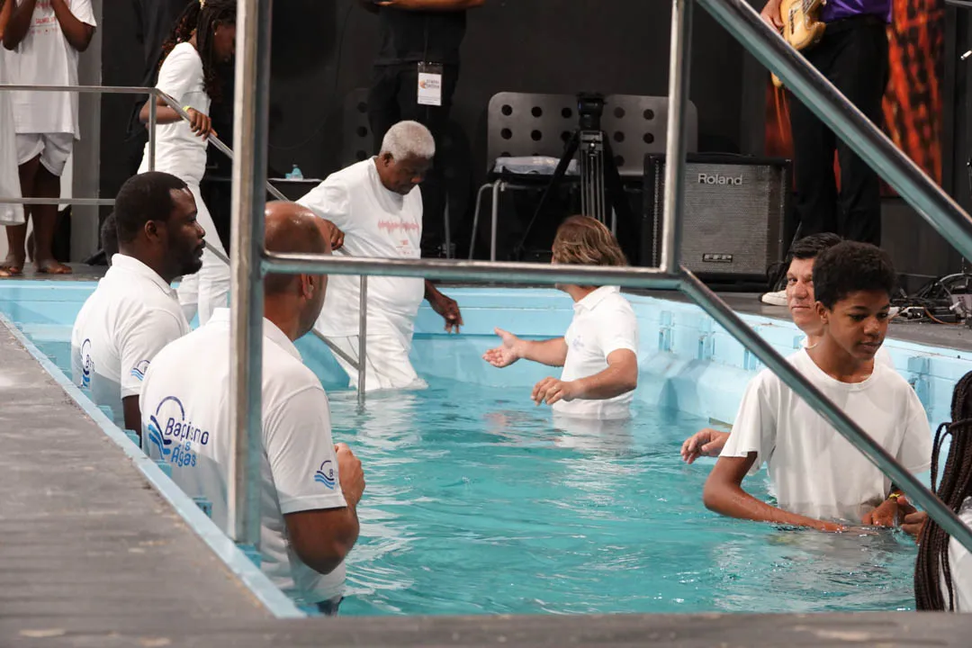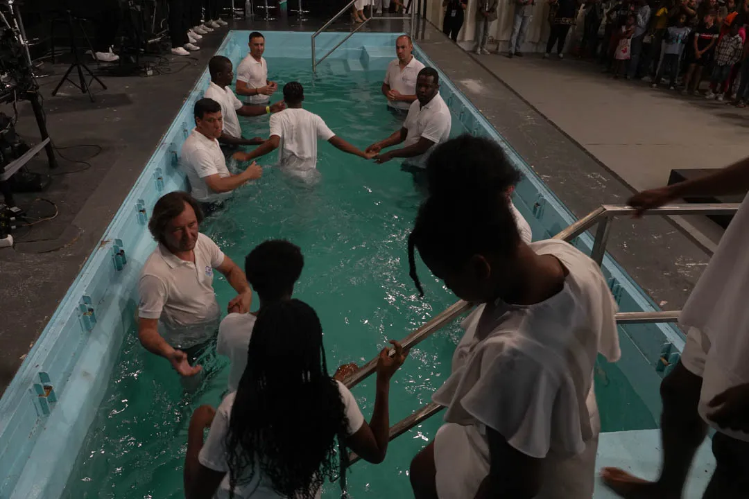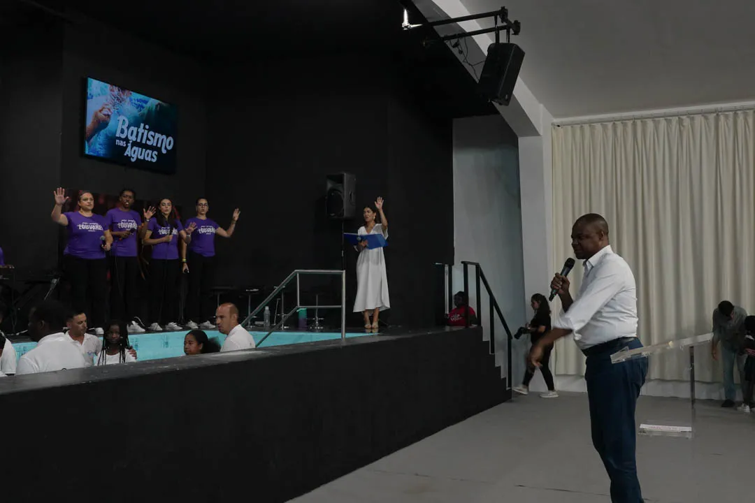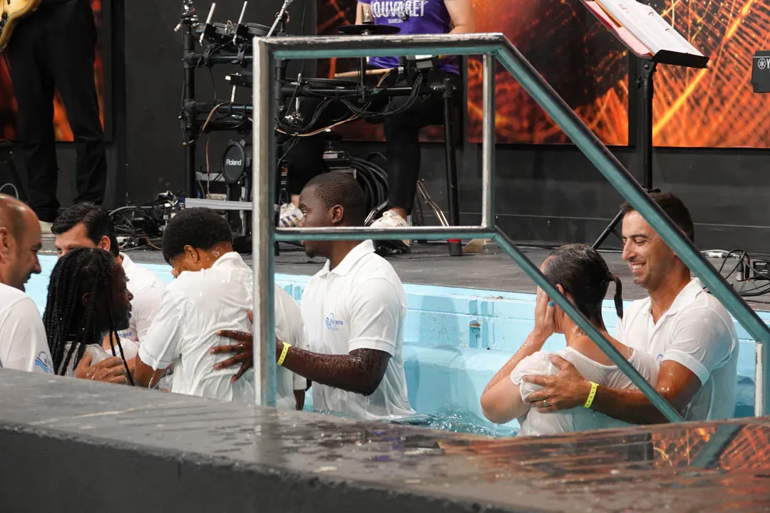 Às 11:00H, no pavilhão multiusos, deu-se início com muito louvor e alegria a mais uma cerimónia de Batismos nas Águas.