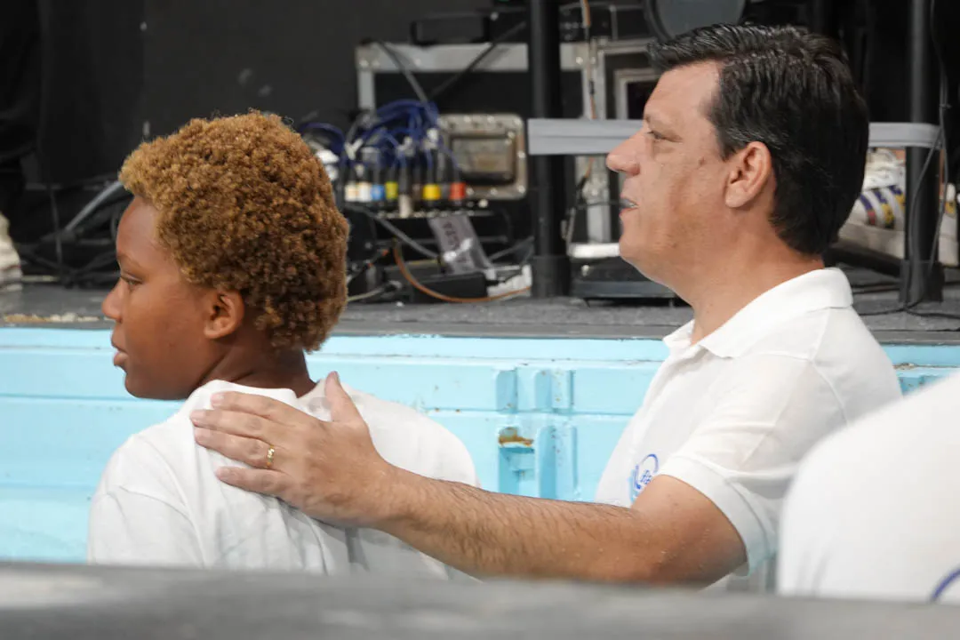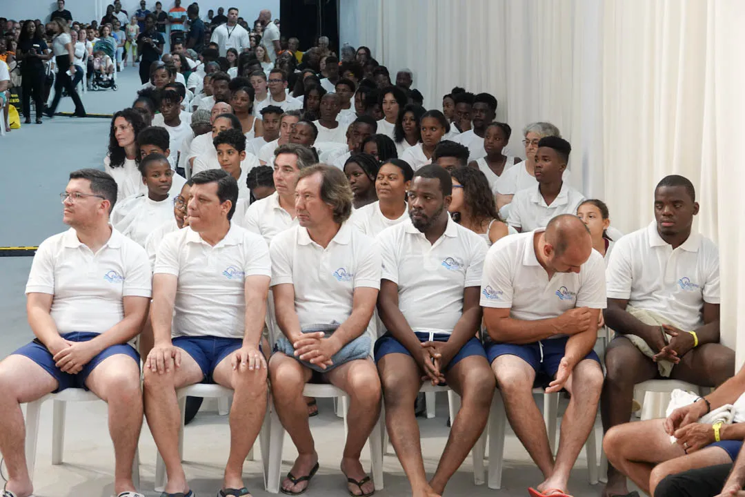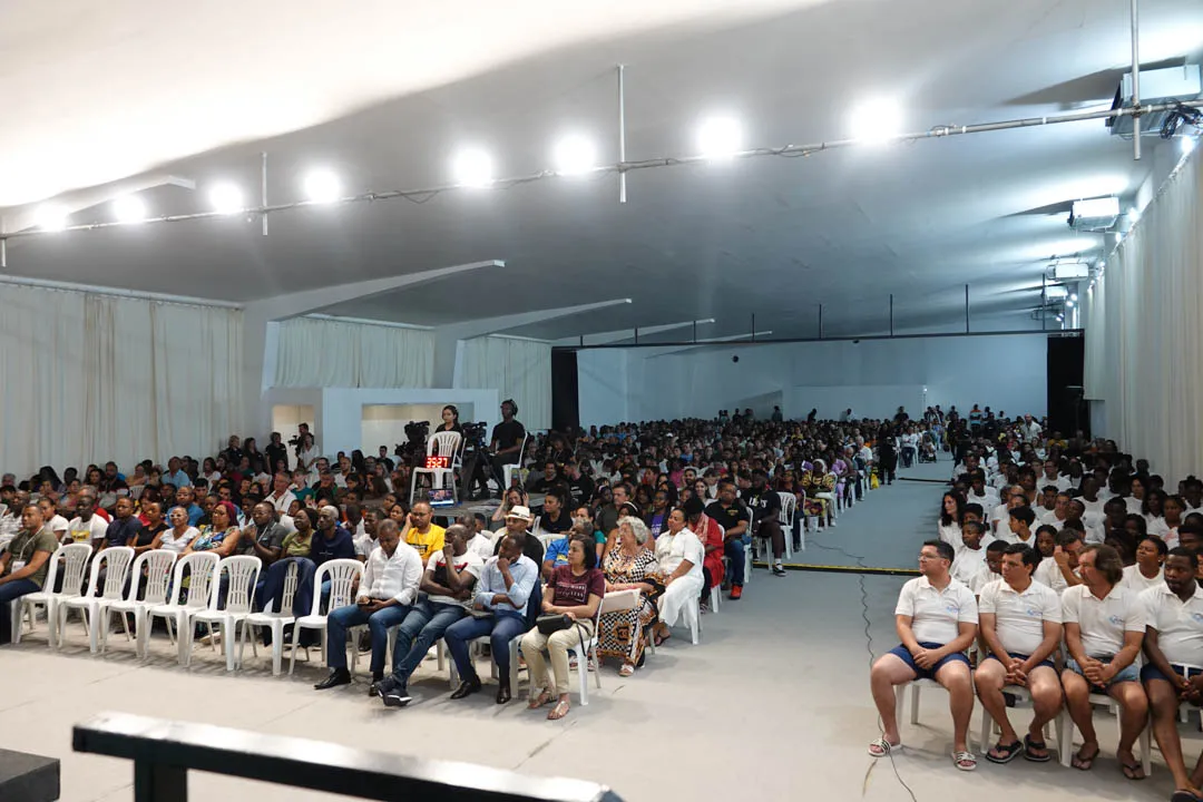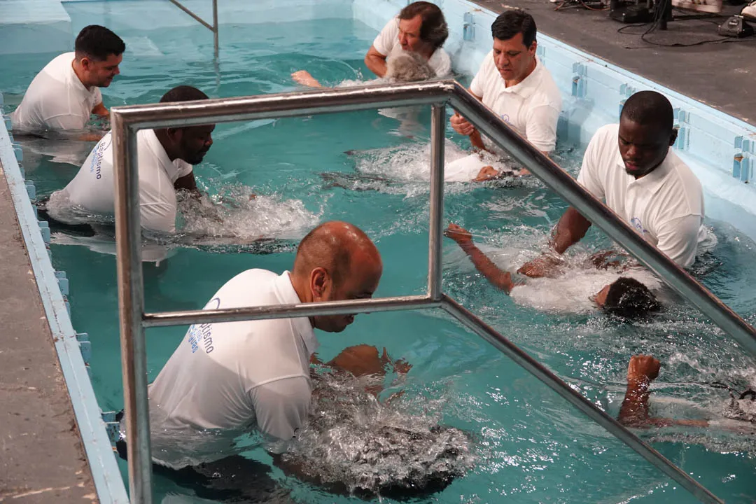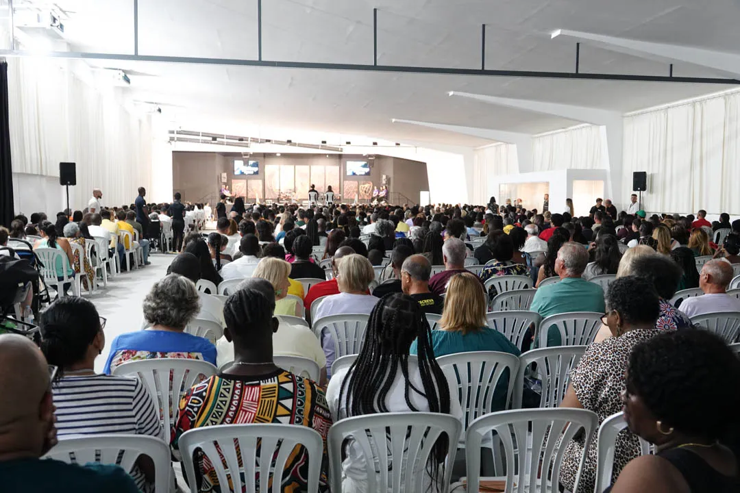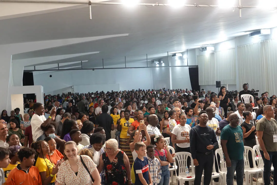 Às 11:00H, no pavilhão multiusos, deu-se início com muito louvor e alegria a mais uma cerimónia de Batismos nas Águas.