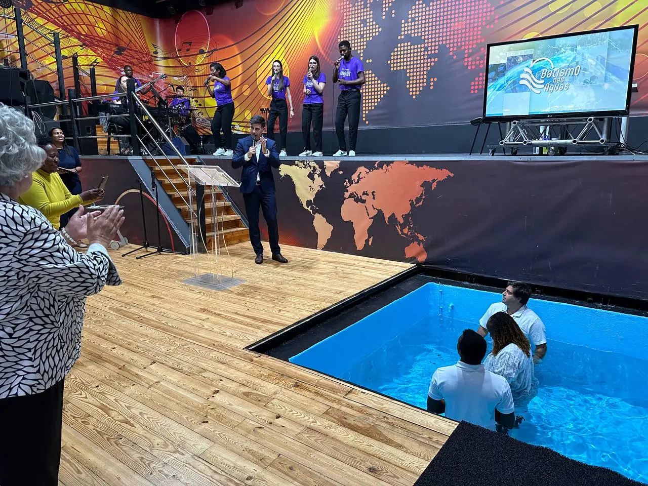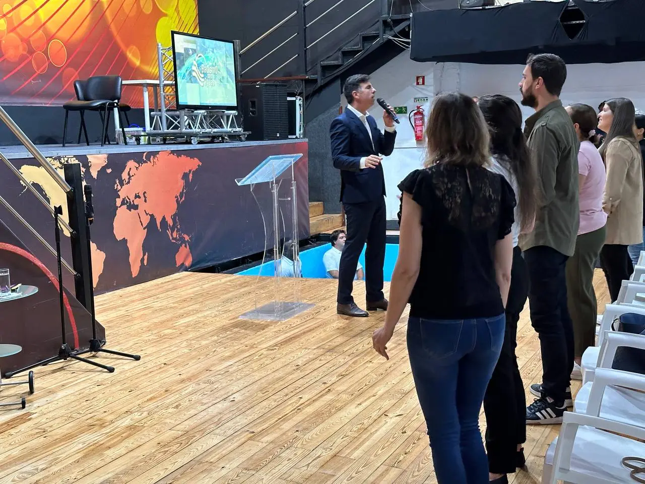 Com a clareza da cerimónia que se realizava, prosseguimos para a decisão de mudar de vida. Os irmãos foram chamados ao batistério, começando uma nova etapa com Deus.