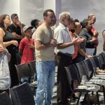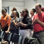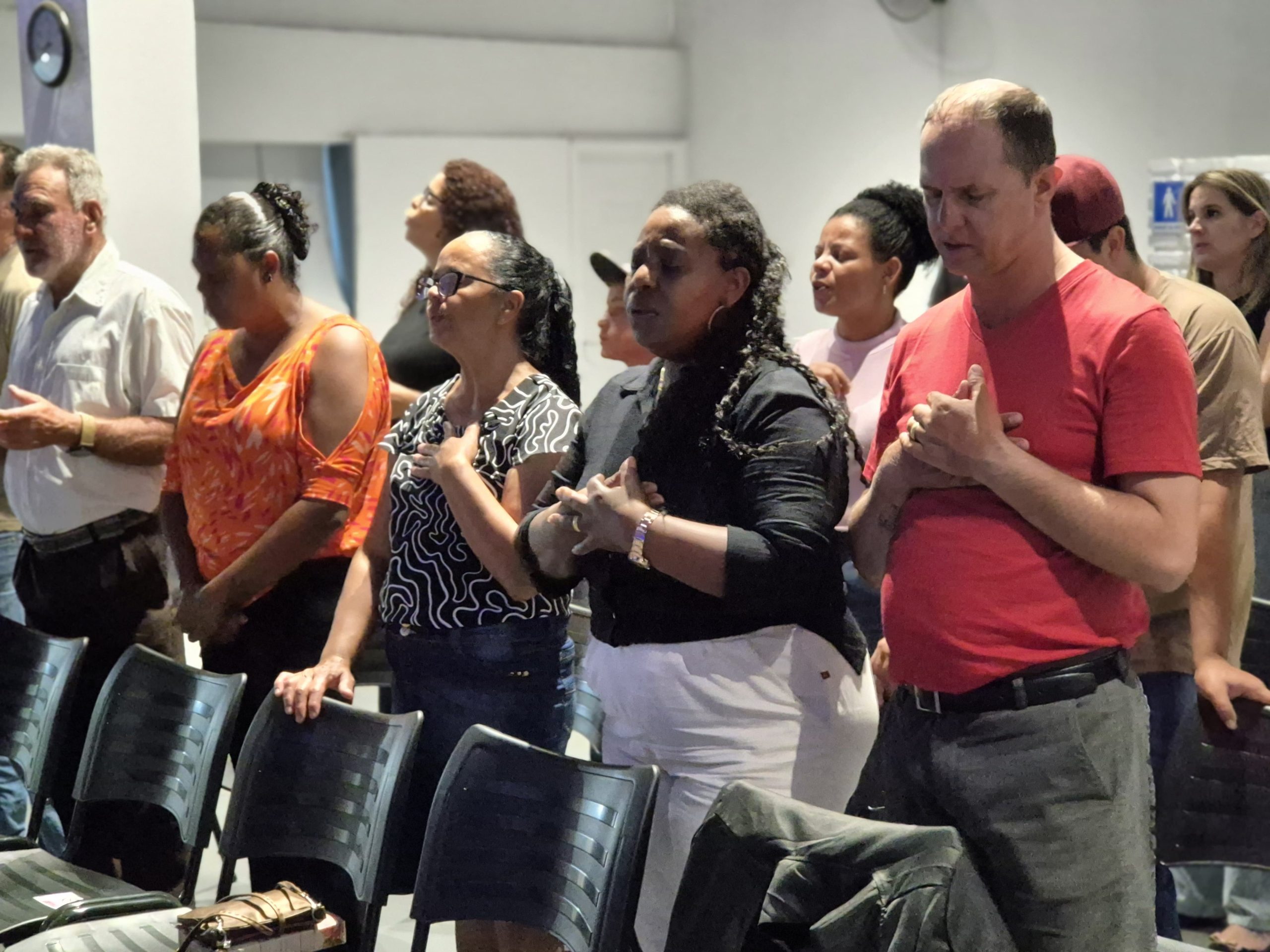 O encontro começou com um momento especial de louvor, em seguida foi dada uma palavra técnica e seguiu-se a ministração da parte espiritual dada pelos bispos.