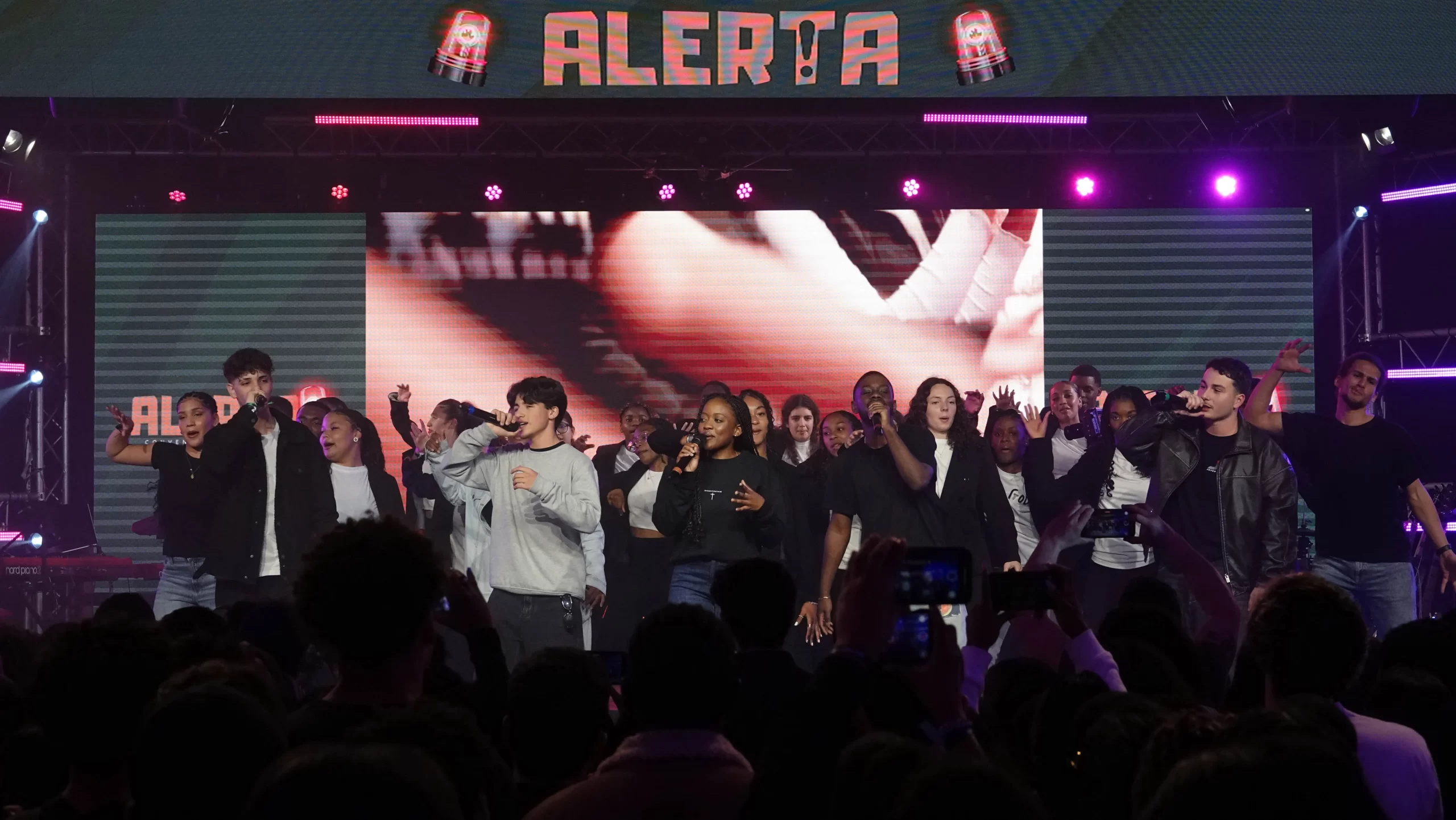 Em seguida, foi apresentado um número especial com o tema “Alerta”, marcando um momento de ânimo e reflexão. Recebemos diversas bandas e grupos que trouxeram as suas músicas para animar a plateia, entre elas: Key B, The Way e The Disciples com Soulfishers.