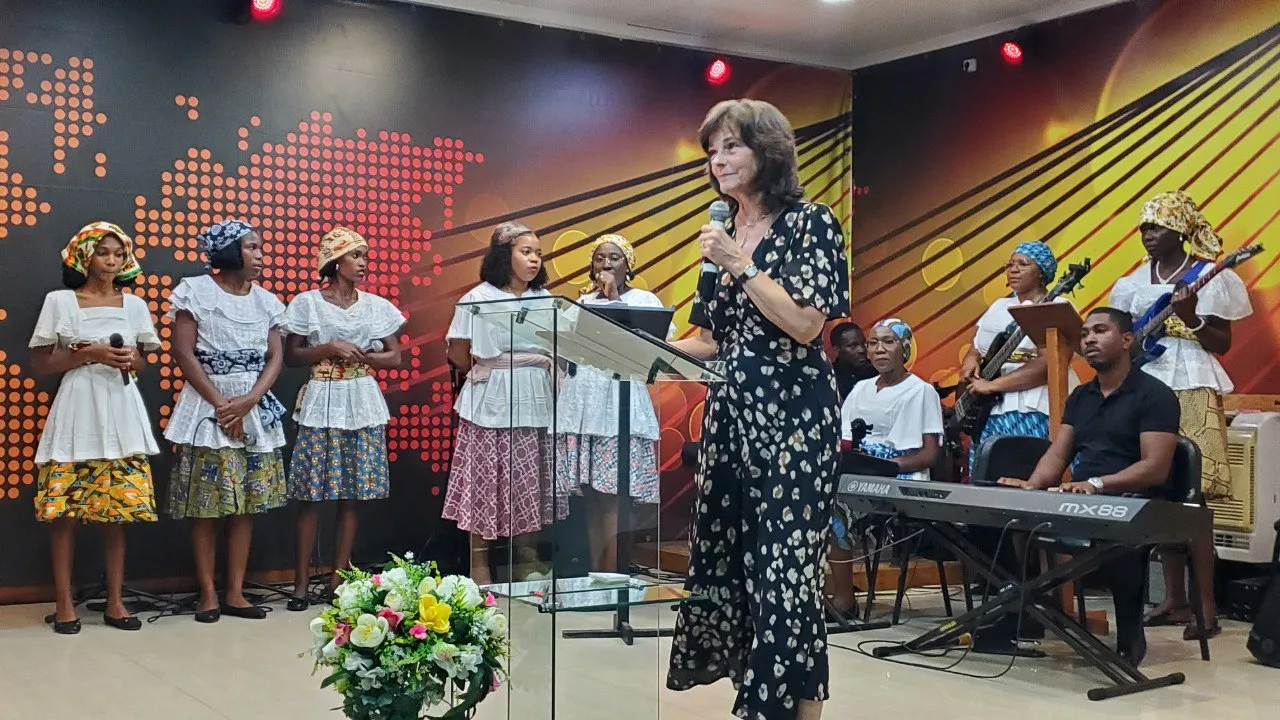 Danças típicas e apresentações especiais preencheram a primeira parte da Cruzada, onde depois de uma palavra de comunhão, a Bispa Christel levou o povo a adorar a Deus a uma só voz.