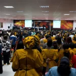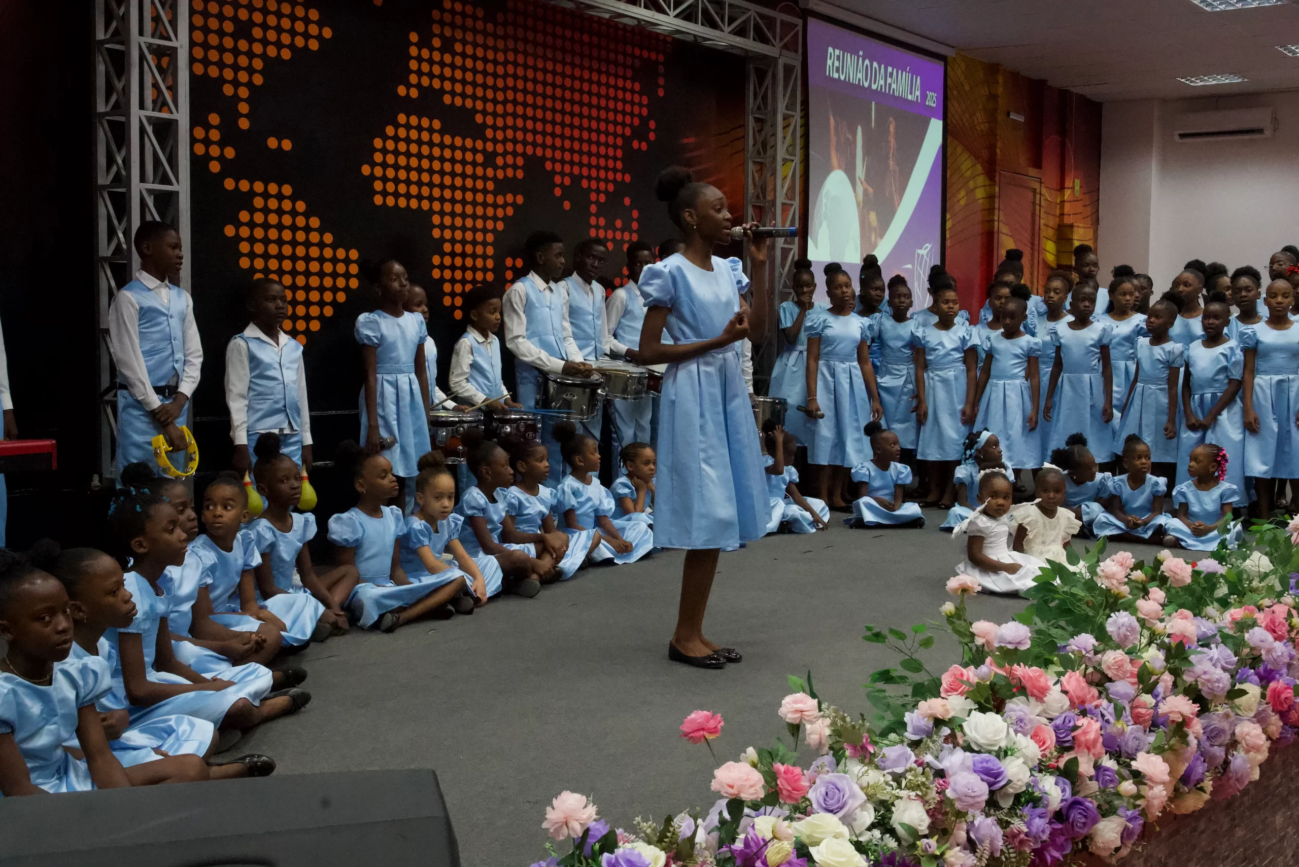 Depois da passagem no corredor de boas-vindas, a Cruzada iniciou com músicas de fé cantadas pelo Grupo de Louvor, mas também com apresentações muito especiais: a música “A Deus toda a glória” tocada e interpretada por crianças e também uma peça de teatro interpretada pelo grupo de senhoras.