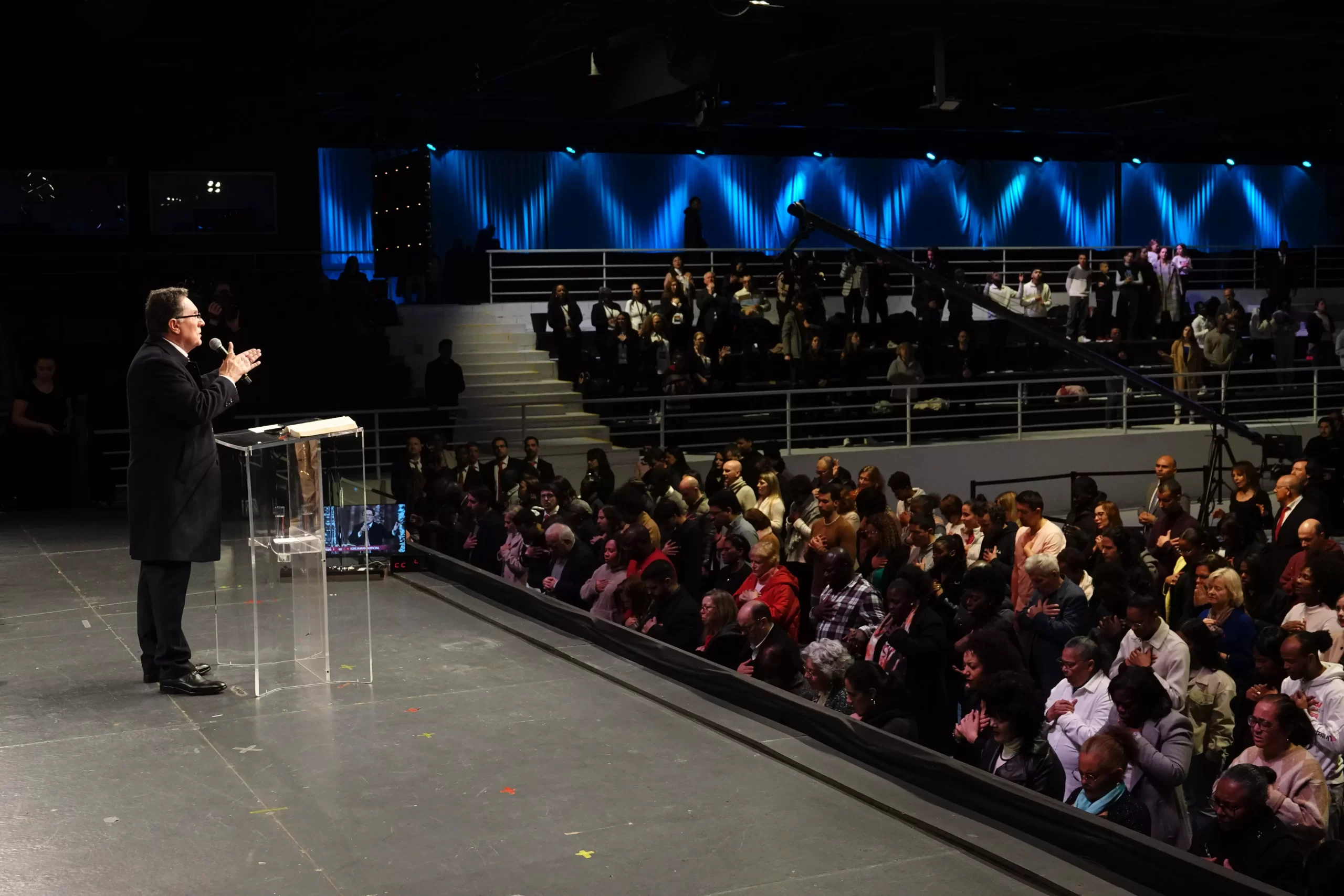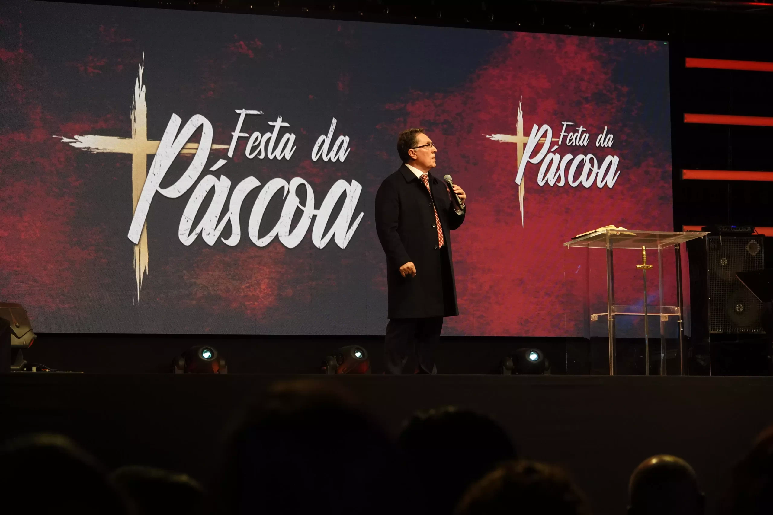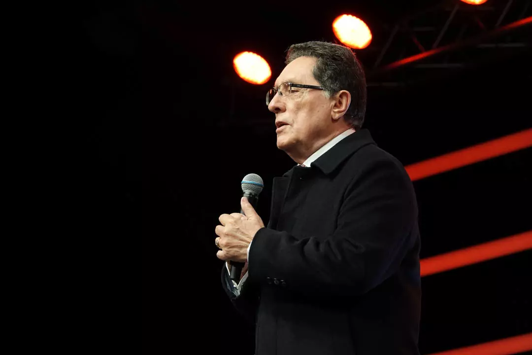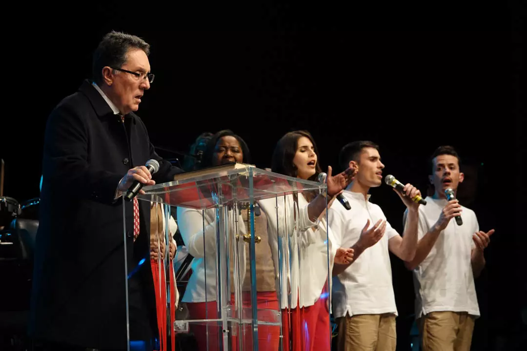 Depois do Team Kuriakos ter levado o povo a louvar com alegria, o Apóstolo Jorge Tadeu, Fundador e Presidente das Igrejas Maná levou o templo a adorar a Deus.