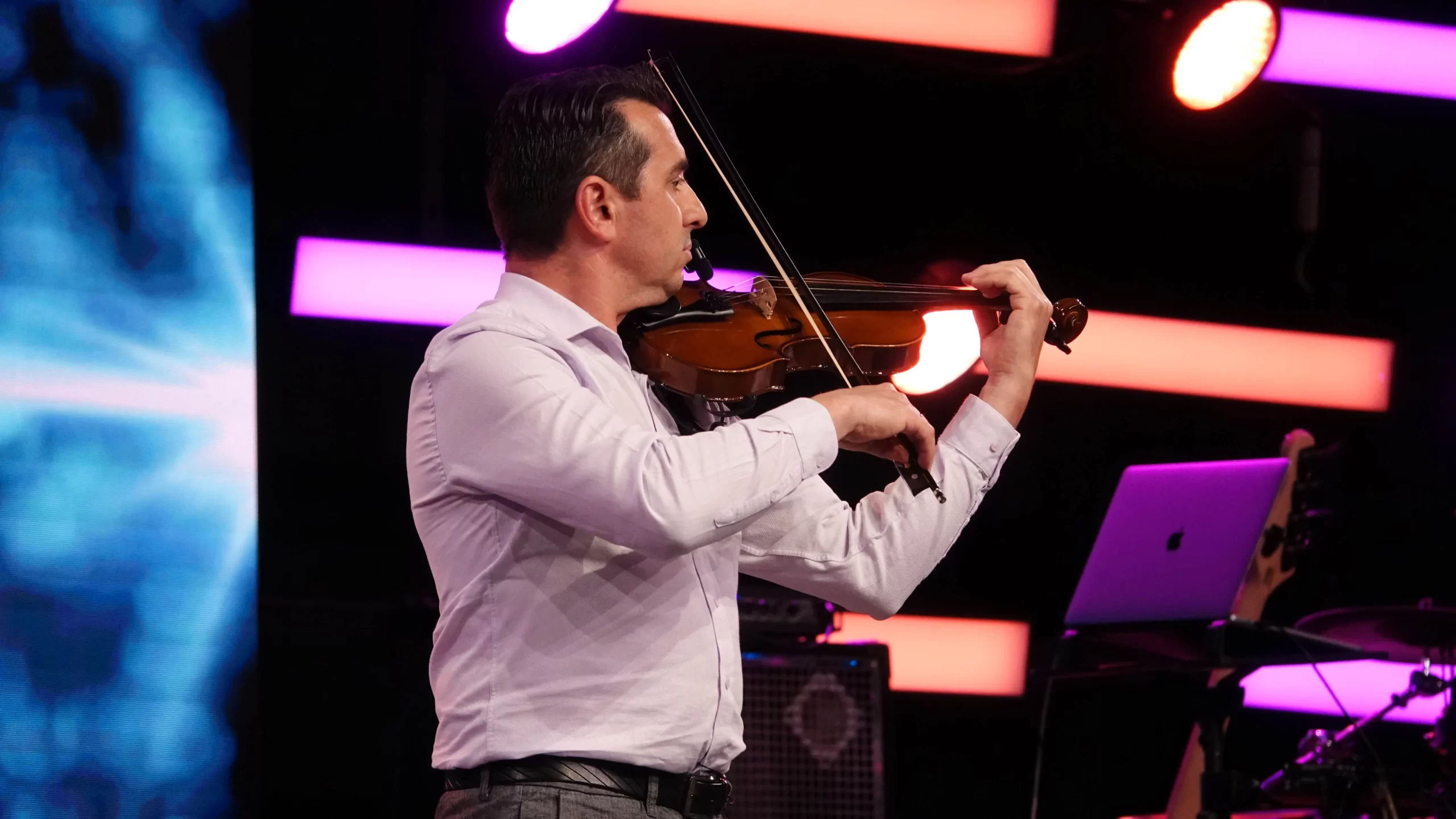 Tivemos também um momento especial com Valentyn Kosonotskyy, que interpretou ao violino a música “Em Meu Lugar”, dos Feedback.