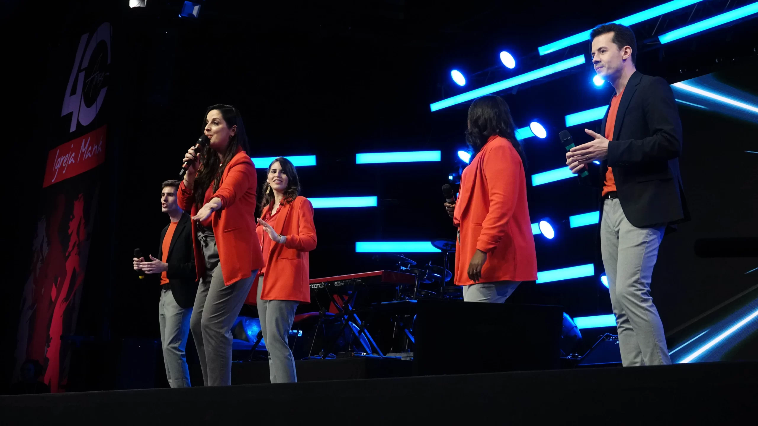 A noite continuou em grande festa! Com a energia e entrega que os caracteriza, o Team Kuriakos levou todo o povo a louvar a Deus com muita alegria e gratidão!