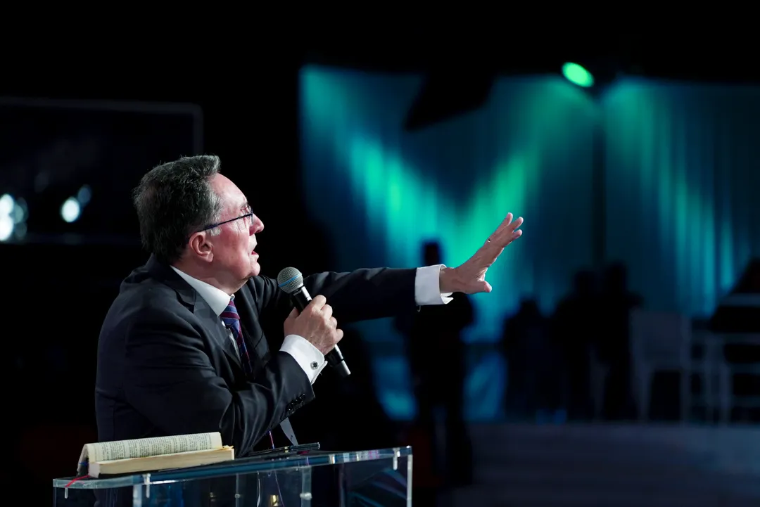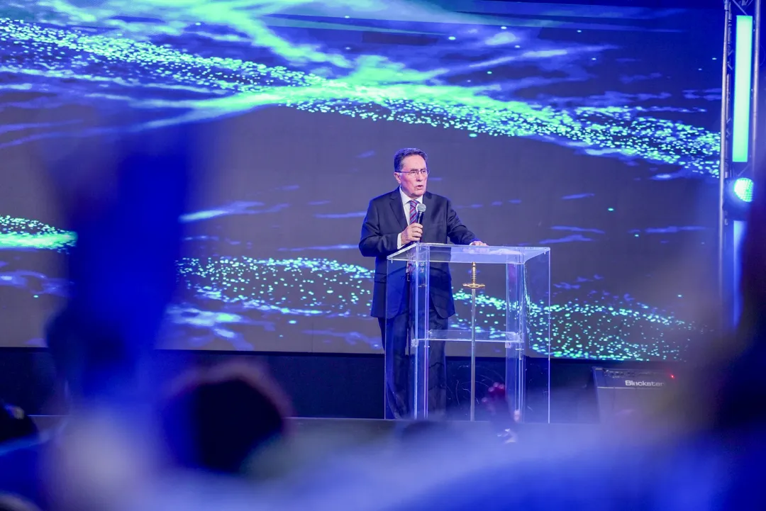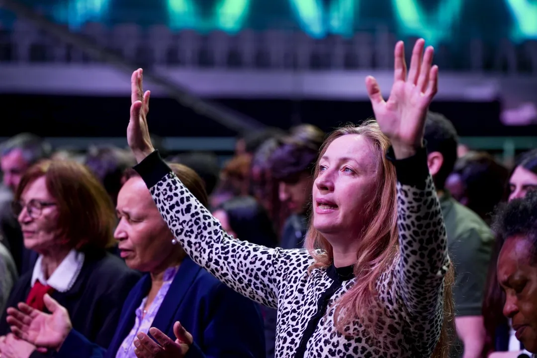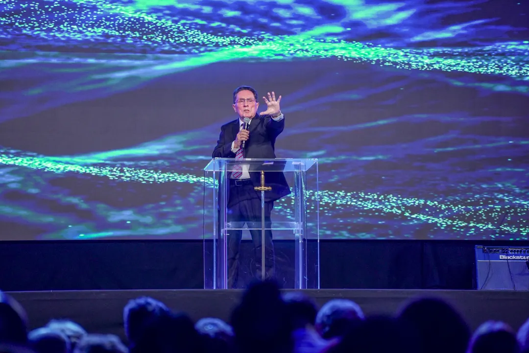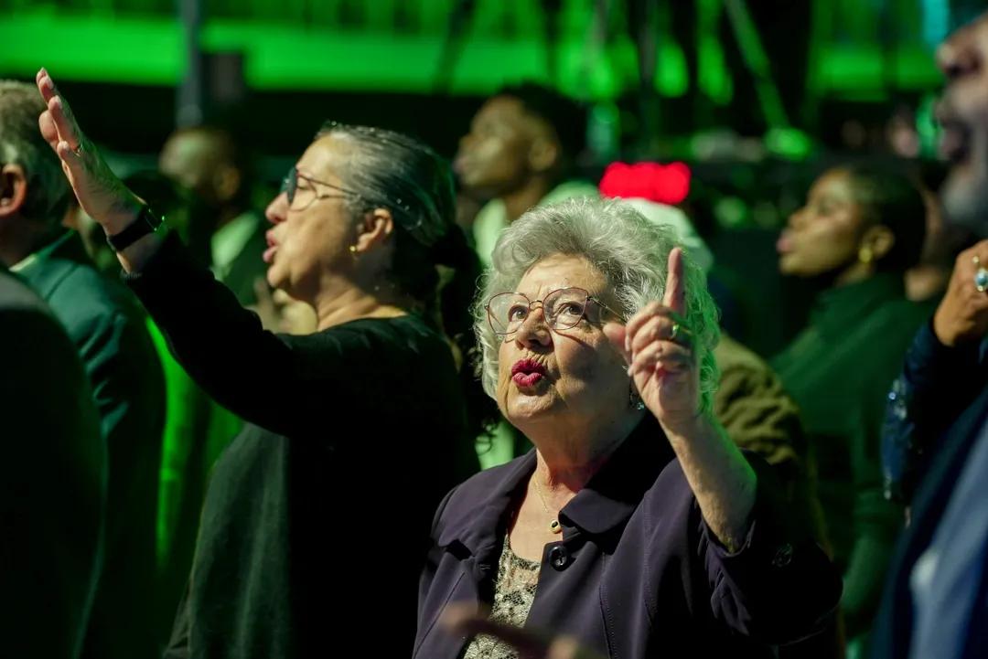 Depois de um momento de músicas de fé guiadas pelo Team Kuriakos, o Apóstolo Jorge Tadeu levou todo o povo a adorar a Deus.