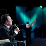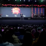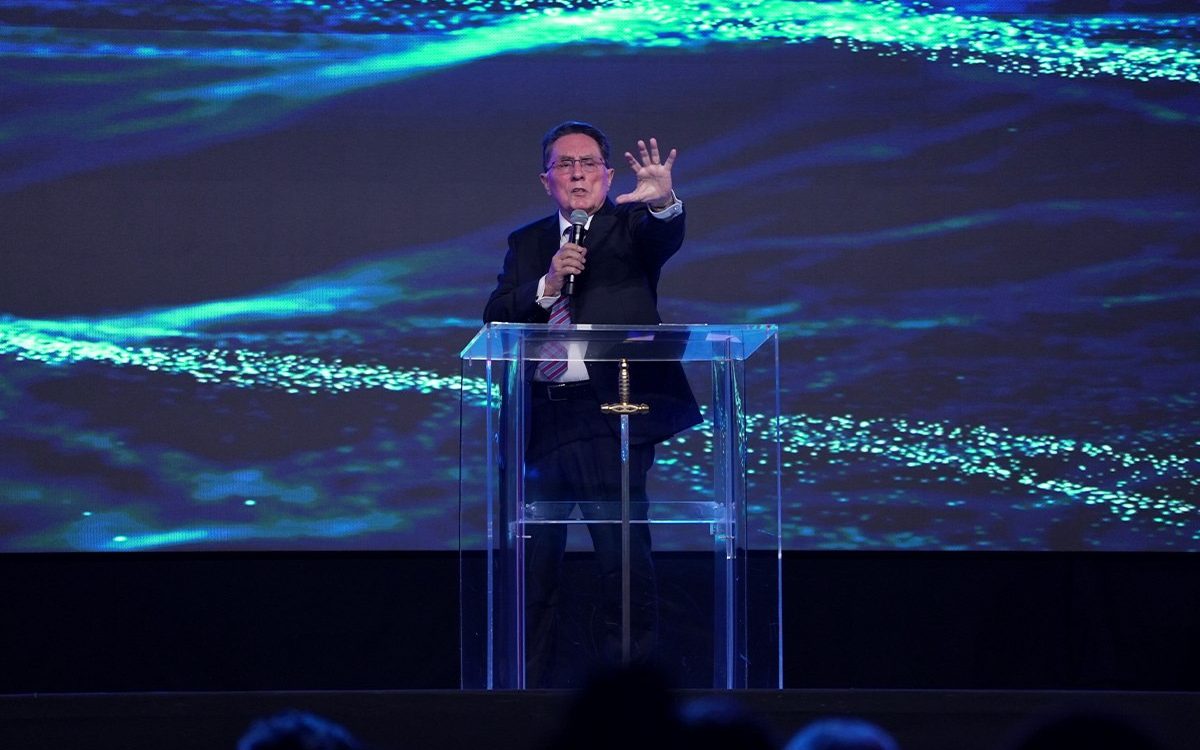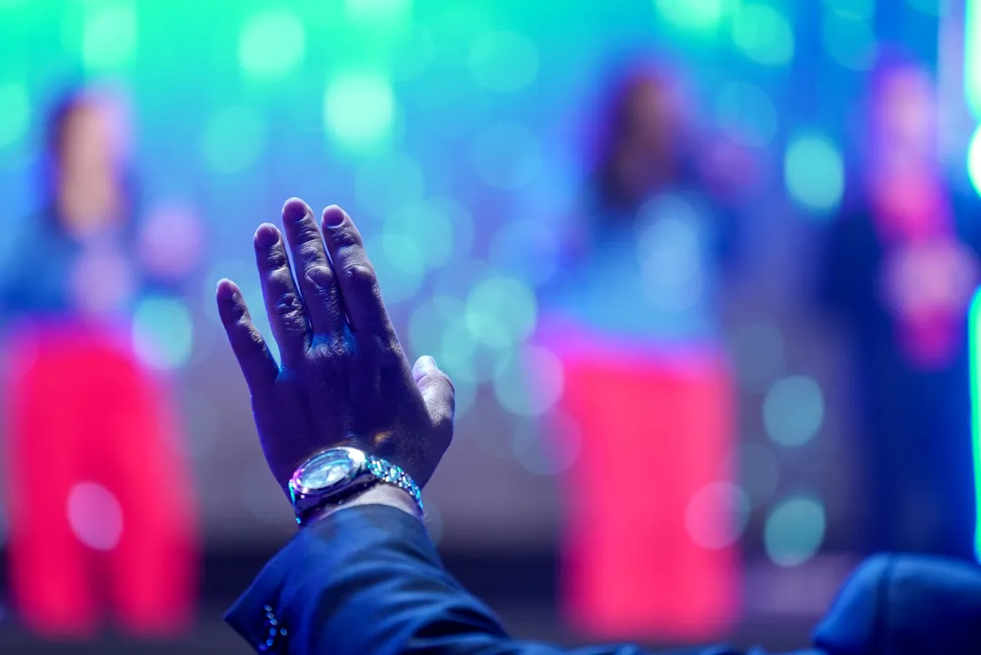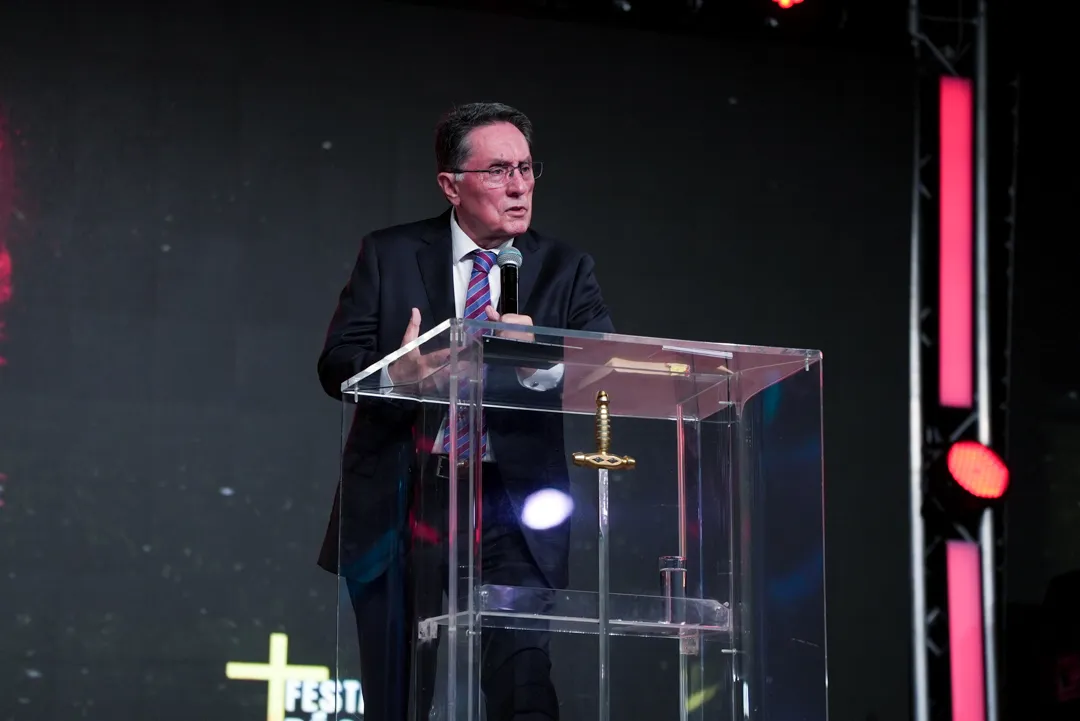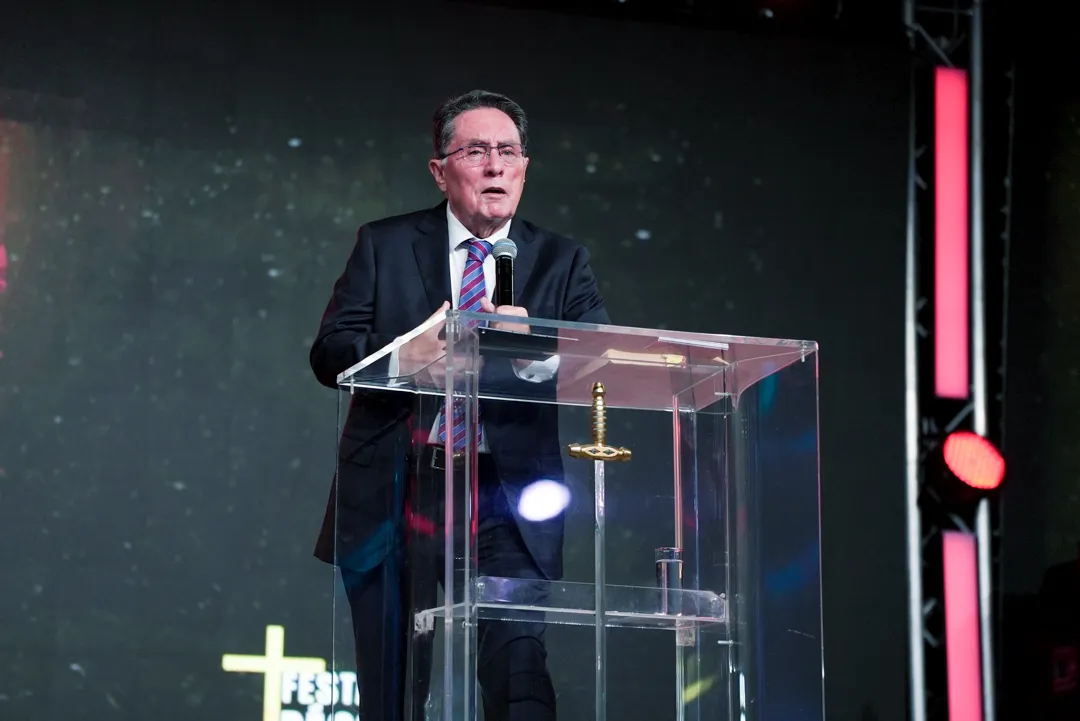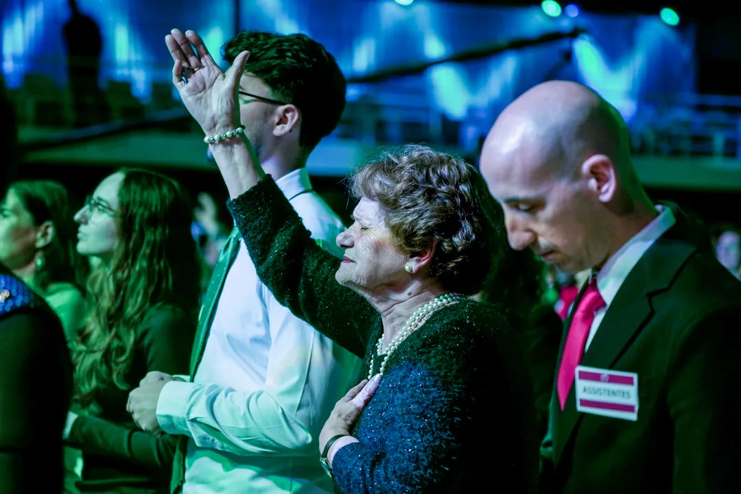 Depois de um momento de músicas de fé guiadas pelo Team Kuriakos, o Apóstolo Jorge Tadeu levou todo o povo a adorar a Deus.