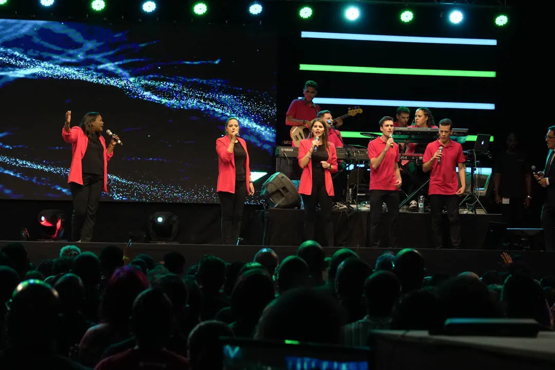 O Team Kuriakos subiu ao palco e levou todos a louvarem e adorar a Deus.