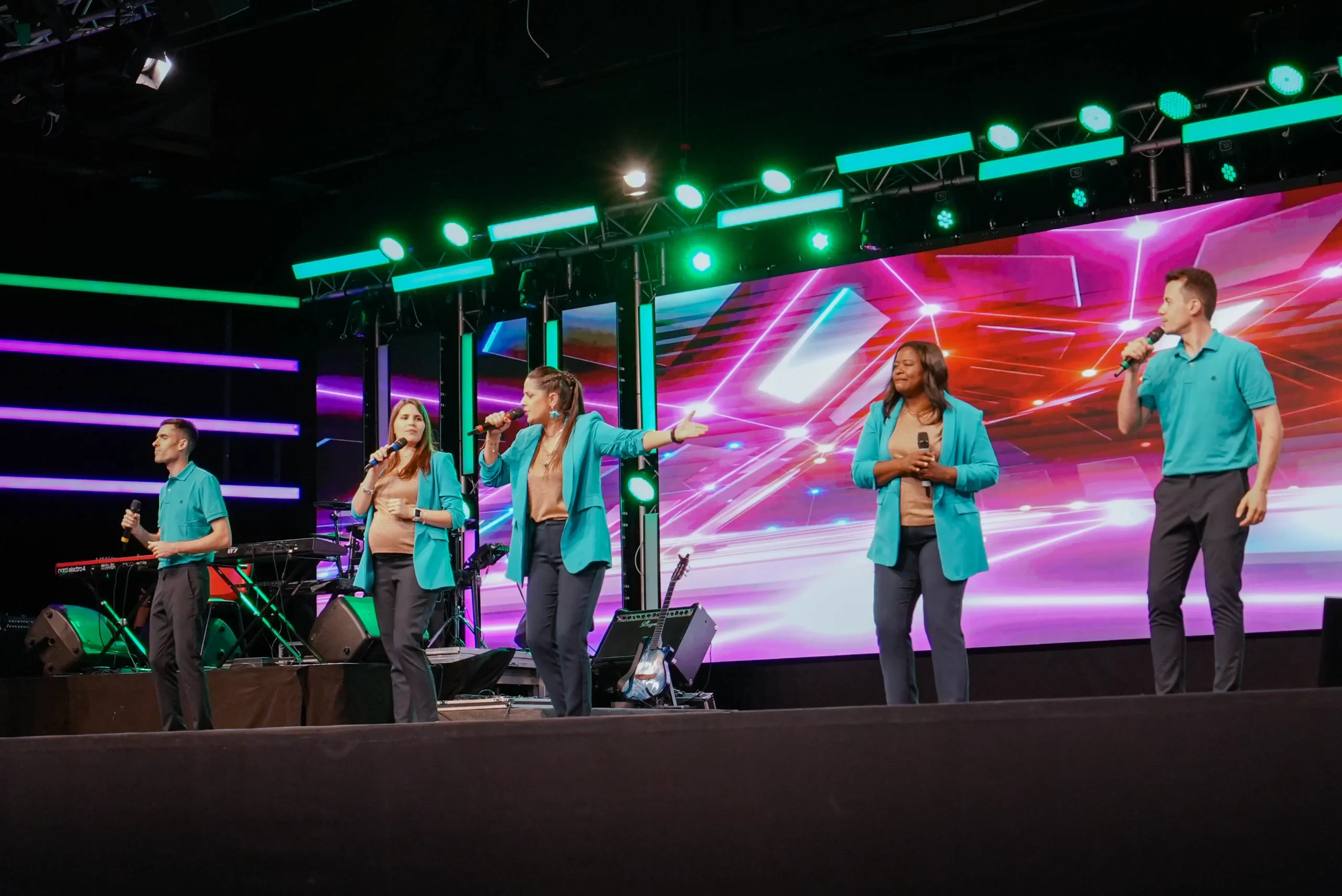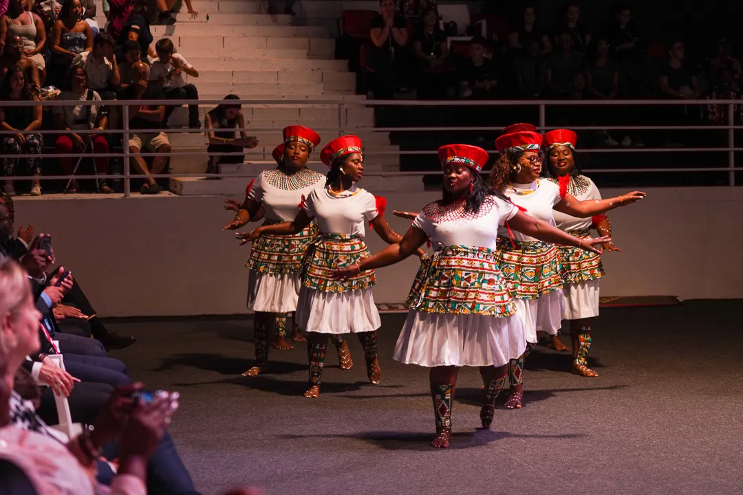 A 5ª reunião da noite da Convenção de Fé 2025 teve início com a participação especial dos Guardiões da Arca. Carlos Moreira, e as bandas Perfect Bliss, KSA e Mike Tadeu emocionaram o público com uma apresentação musical em inglês. A programação seguiu com uma vibrante dança típica argentina, um número especial da Igreja Infantil, a participação de The AOG e um belíssimo desfile representando vários países de África e ainda o Team Kuriakos.