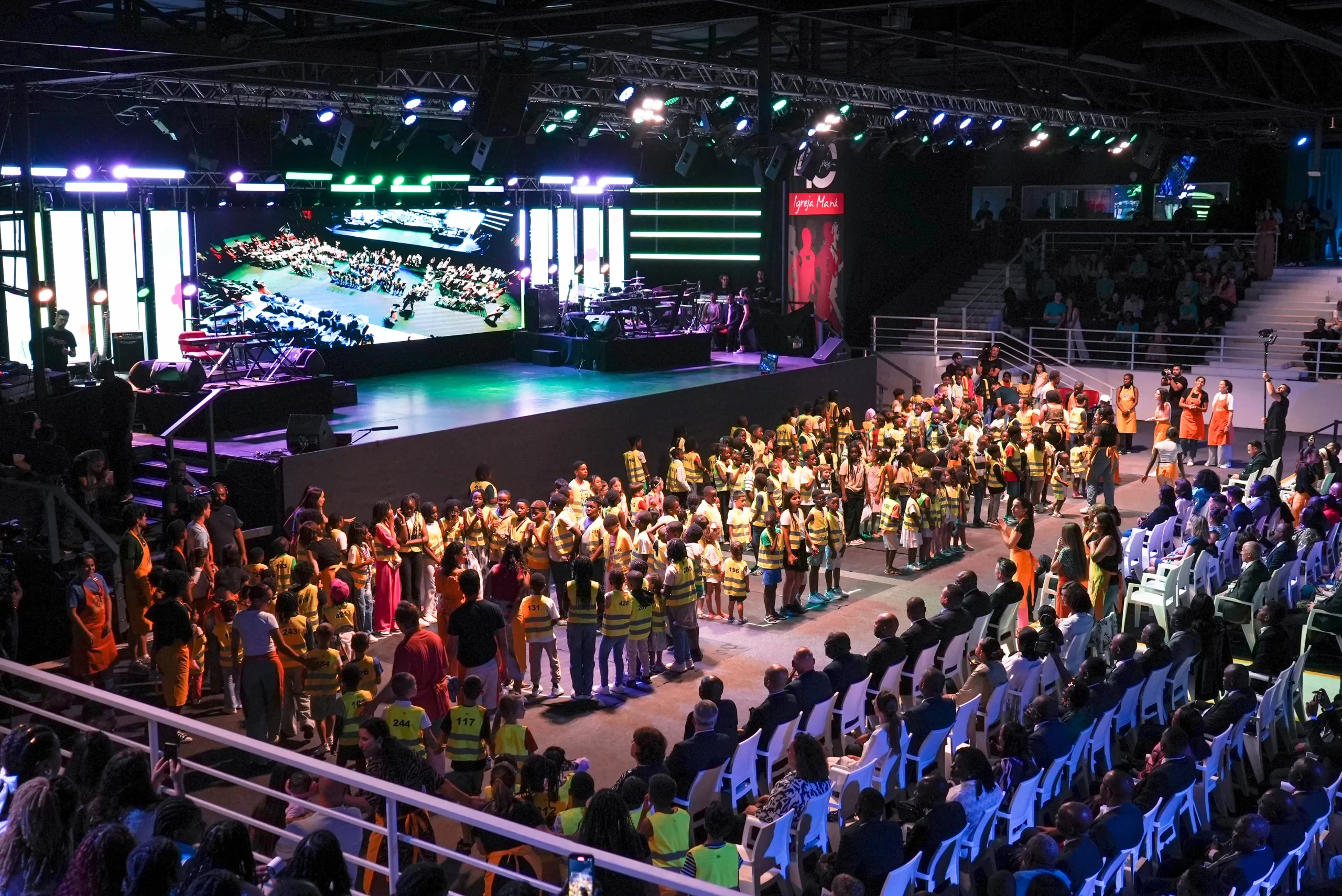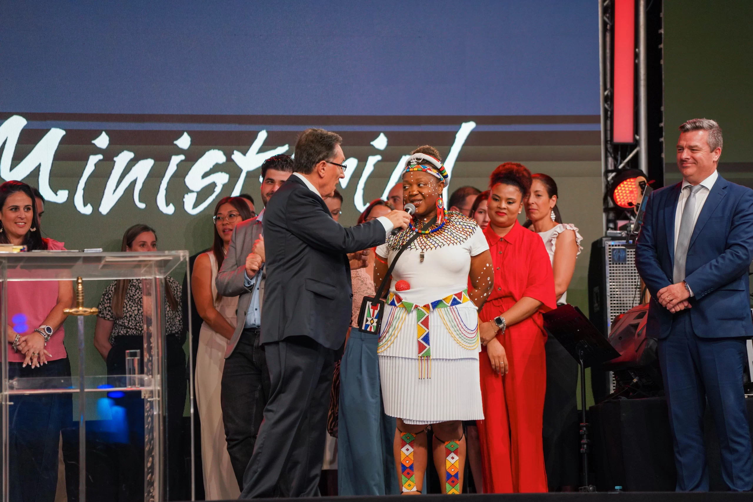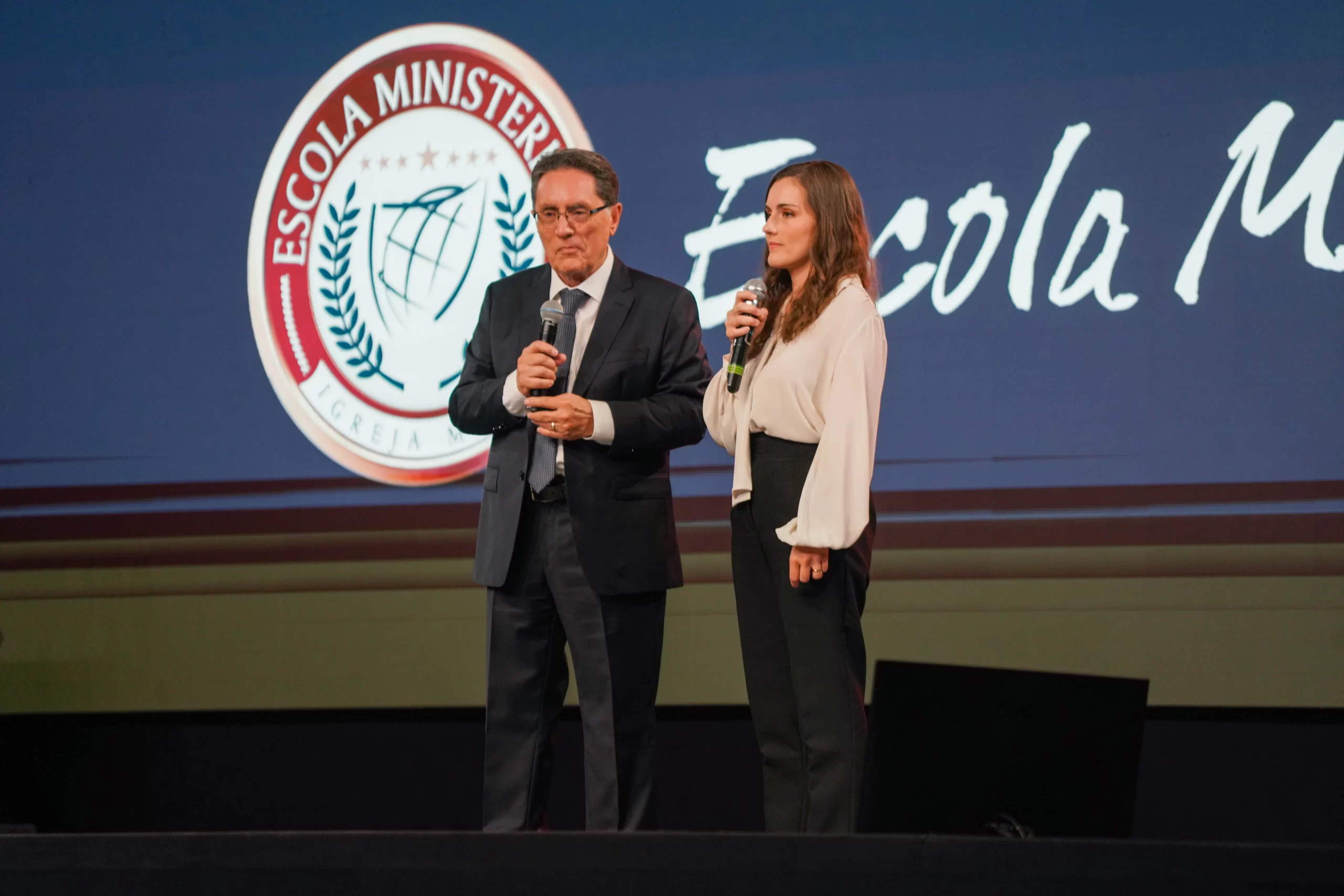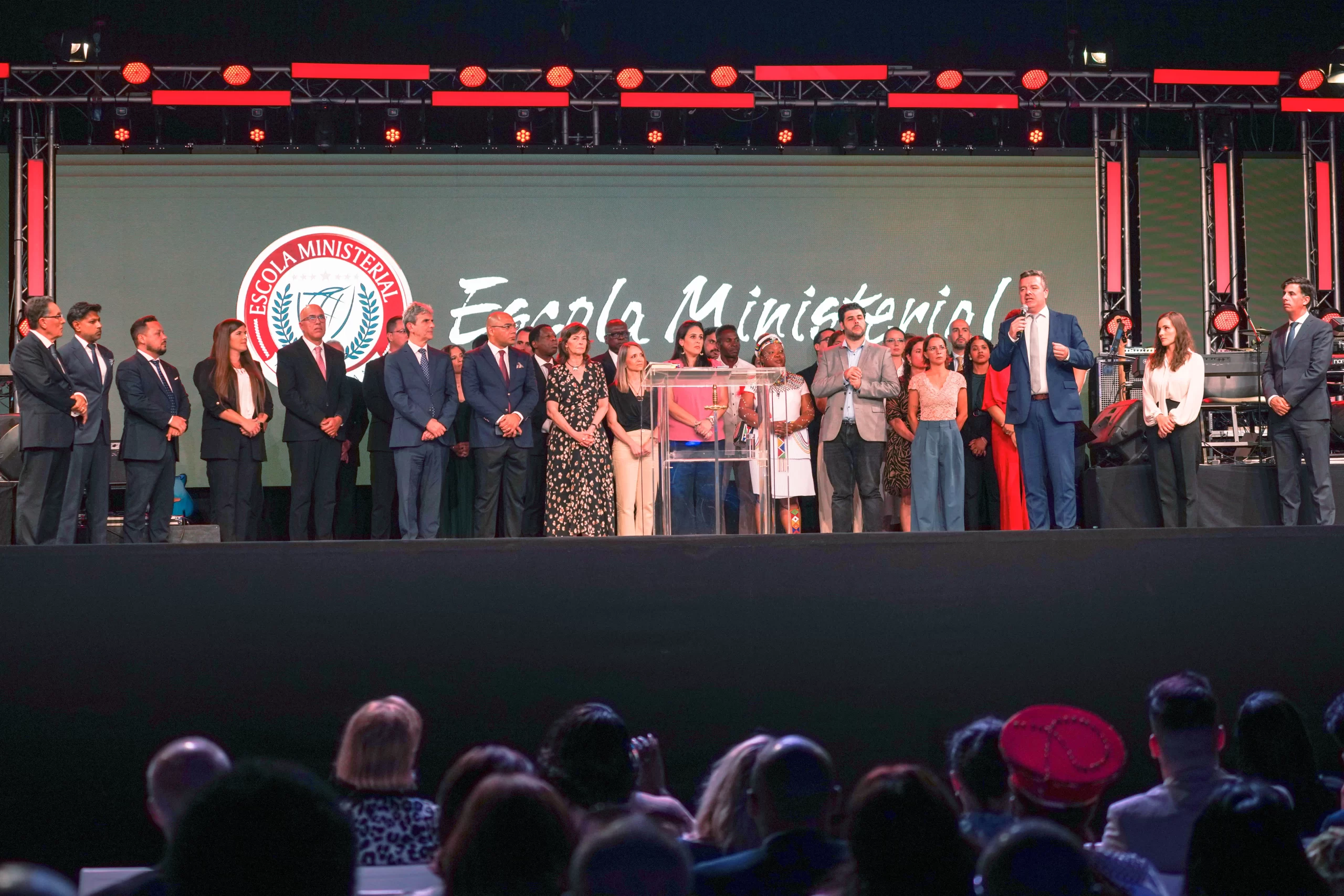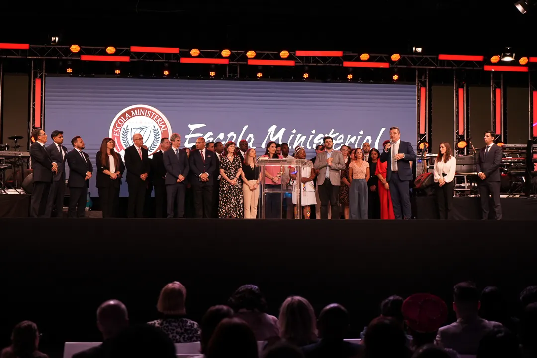 O Apóstolo, juntamente com a Bispa Samara de Jesus, convidou todos os professores da Escola Ministerial ao palco, destacando a importância desse e de outros cursos na formação espiritual e no crescimento dos crentes.
