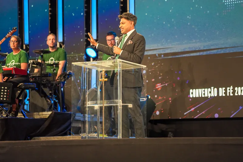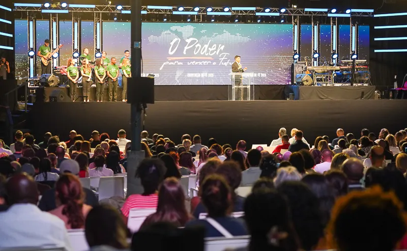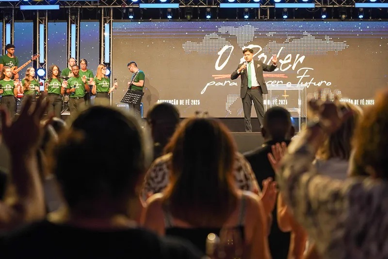 No segundo dia da Convenção de Fé, a tarde iniciou-se com o louvor da Margem Sul e a pregação do Bispo Leonardo Araújo sobre confiar em Deus, especialmente nas finanças. Ele lembrou que nascemos para vencer, temos uma missão e vivemos na era do Espírito Santo, que nos capacita a cumpri-la. Em Cristo, somos filhos de Deus, nova criatura, santos, justos, reis e sacerdotes. Podemos mudar nosso futuro aplicando o princípio bíblico de “semear para colher” e saindo da zona de conforto, confiando que Deus guiará nosso destino, mesmo quando isso nos leva ao desconhecido.